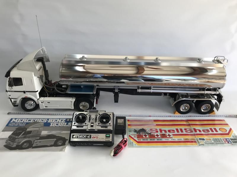 TAMIYA 1/14 MERCEDESーBENZ 1838LSヘッド+フューエルタンクShell仕様セミトレーラー OP多数付 組立済み 中古