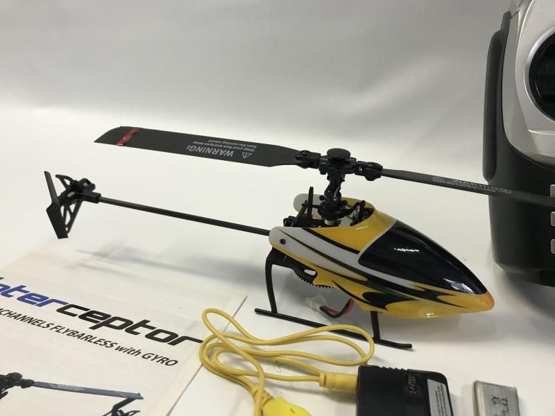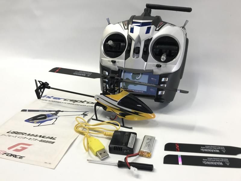 「GFORCE Intercepter フルセット 中古」程度B 【A新品同様 B程度上 C普通 D程度下 Eジャンク】 ●100g以下 手の平サイズの小型ヘリのフルセット中古です。 ●2〜3フライトしか飛んでいないため程度上。壊れ個所や欠品はありません。 ●USB充電器、予備のローター、工具、取説まで全て付属します。 ●テスト飛行済み:小さいのにパワーがあり運動性も良好、ホバリングも安定していて店内を自由自在に飛ばすことが出来ました。微風なら屋外でも飛ばせると思います。右スイッチでD/R(切れ角)の切り替えが出来ます。左スイッチはモーターを停止させるホールドスイッチです。 システム:2.4GHz 4CH Flybarless R/C Helicopter With 6-axises Gyro 寸法 :295 × 49 × 80 (mm) 重量:51.5g ローター径:240mm バッテリー:LiPo 3.7V 300mAh メインモーター:コアレスモーター 充電時間:およそ 60 分 フライト可能時間:5 〜 6 分 電波到達範囲:およそ 40 m ★ヤマト送料¥715かかります(離島地域を除く) ★お支払方法:ヤマト代引き(口座振込でも可)配達日、時間指定、営業所止めにも対応いたします。